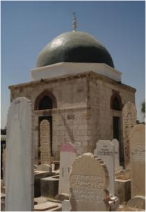 يقع في دمشق القديمة، خارج السور في المنطقة العقارية السويقة، في منتصف الثلث الأول من مقبرة باب الصغير الجنوبية، جنوبي مقام بلال الحبشي وغربي ضريح السيدة سكينة وأم كلثوم.